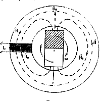 The coil L is an ordinary coil of wire. In strength of electromagnetic induction principle the electro-motive force EMF is generated in coil L when rotor is revolving and flux H is changing. If the load is connected to coil L the secondary flux H is created.