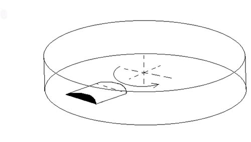 The wing here is connected with body of system. Many wings can be installed in radial superposition with some distance. Rotation velocity for liquid should be less than the velocity for air flow.